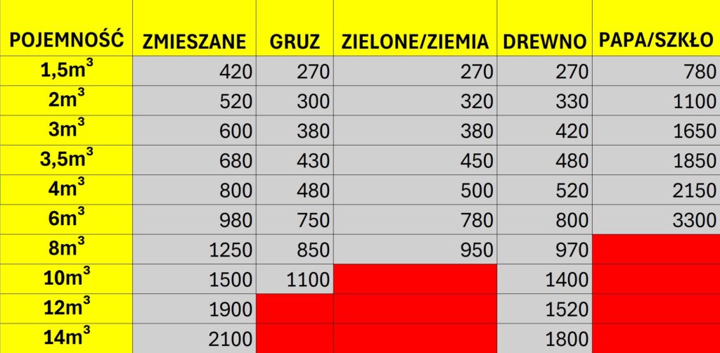 Przedmioty ponadgabarytoweCena ustalana indywidualnie